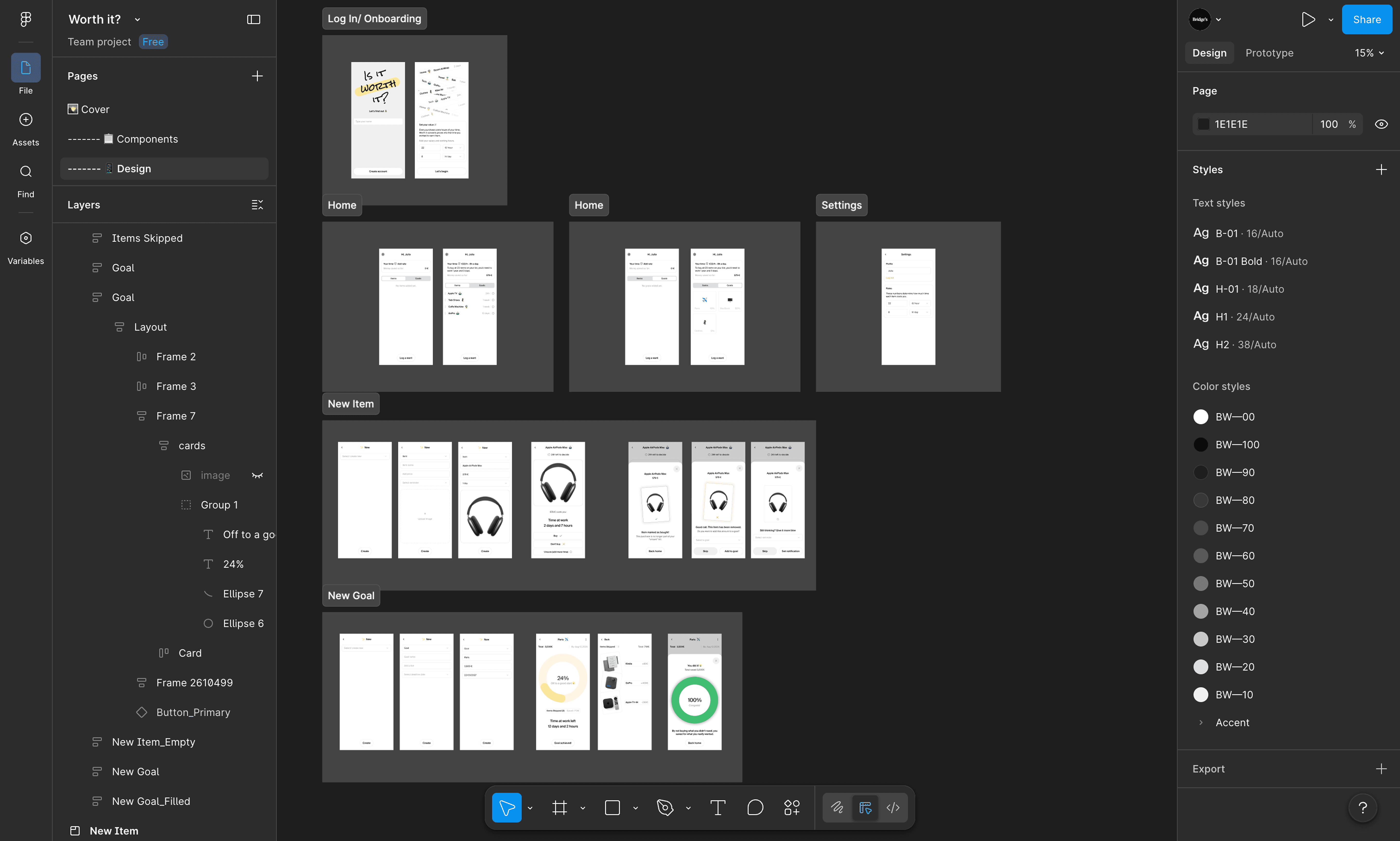 UI design system and key screens