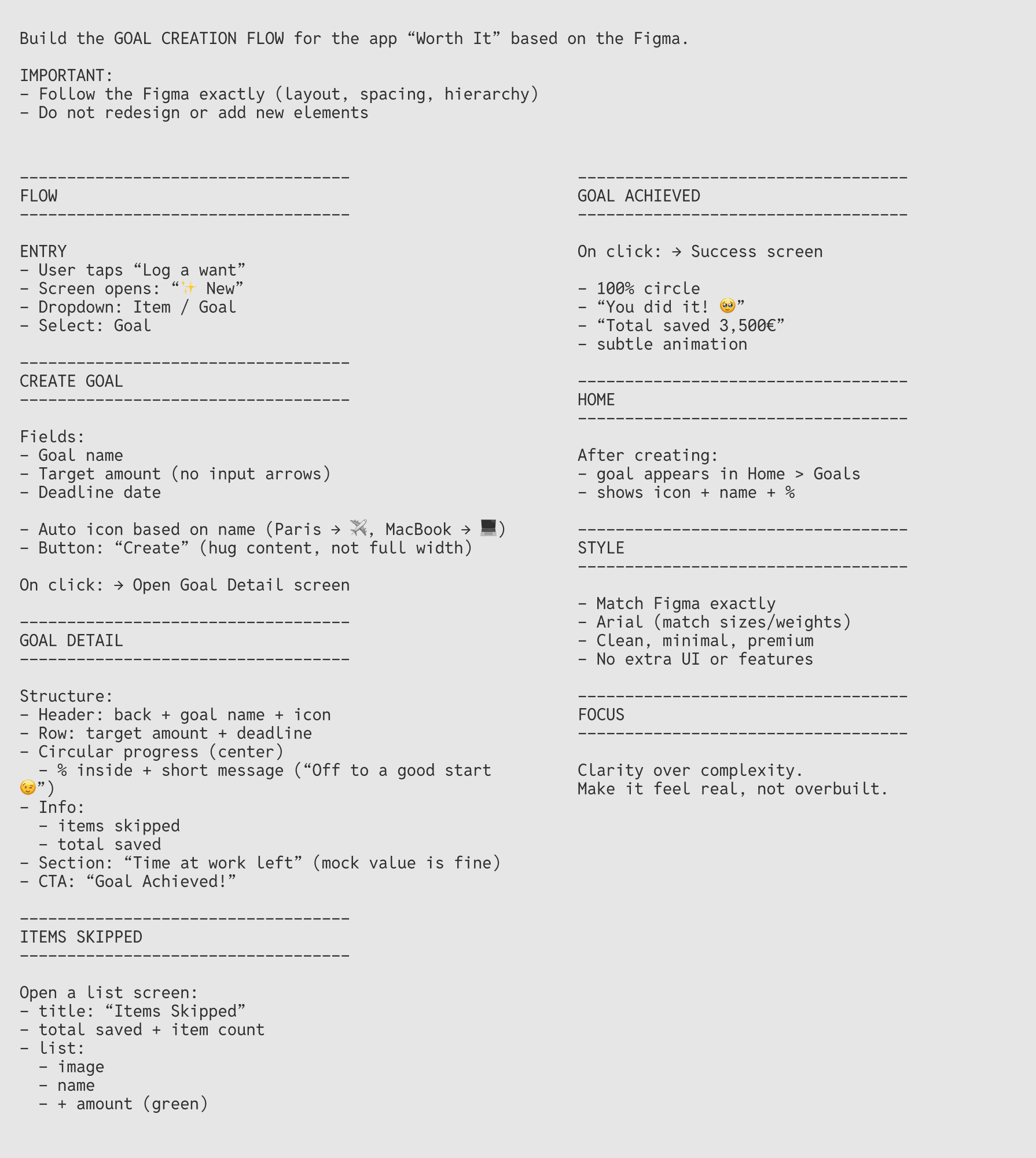 This project explores how AI can act as a collaborator in product design and development. The app rethinks traditional budgeting by shifting the focus from tracking expenses to rewarding restraint—allowing users to log items they want, consciously skip purchases, and redirect that value toward meaningful goals.